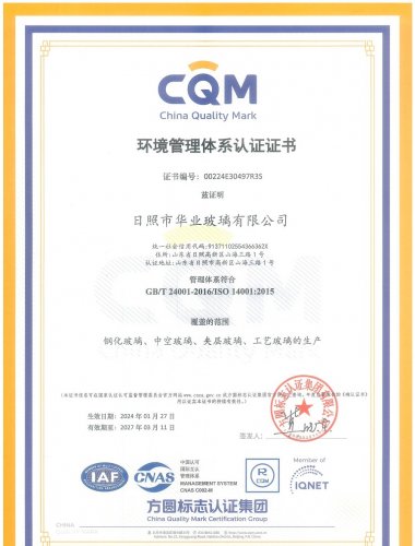 環(huán)境管理體系認證證書